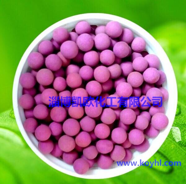 高錳酸鉀活性氧化鋁球呈紫色或橙紅色,它采用特制伽馬活性氧化鋁球作載體,特制活性氧化鋁球必須具有高比表面積、大孔融、高吸附性等特點。經過高溫溶液的加壓、減壓、過濾、烘干等工序制作而成。活性高錳酸鉀球具有強度高、吸附能力強、使用周期長等特點。